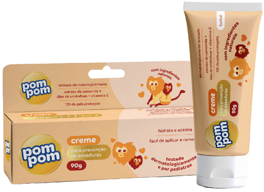 - Aplicar uma camada fina do Creme para prevenção de assaduras Pom Pom, após o banho e a cada troca de fraldas.